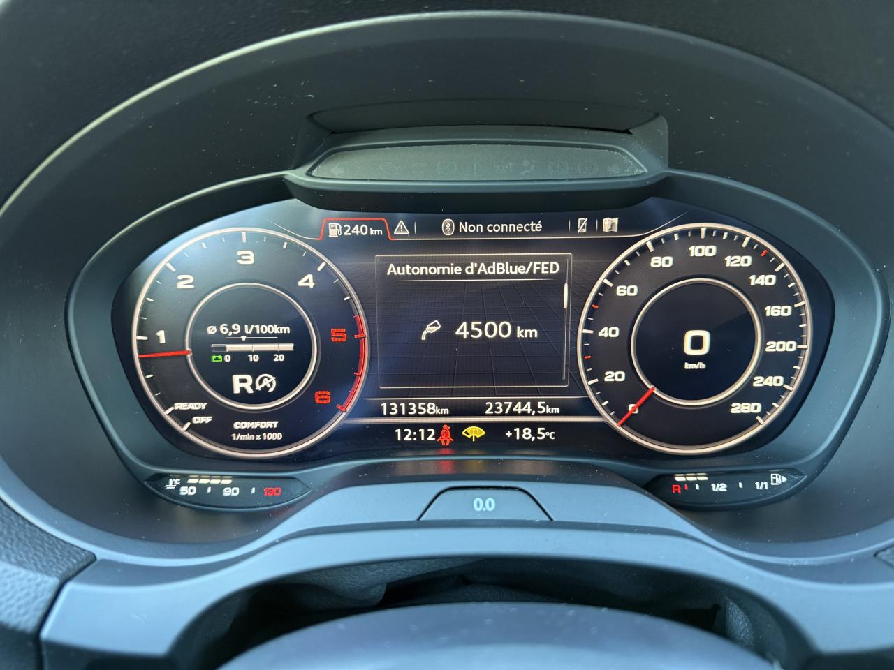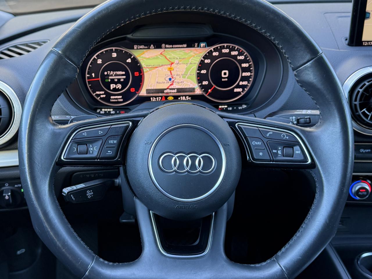 Accoudoir central avantAdvanced Key : système d'autorisation d'accès et de démarrage main libreAirbag de têteAirbags frontaux, latéraux et de genoux pour le conducteur et le passager avantApplications décoratives Aluminium MistralAppuie-tête intégraux à l'avant et à l'arrièreASR (antipatinage) pour une motricité et une rigidité transversale optimales. Réduit le patinage des roues motricesAudi connect 3 moisAudi connect 36 moisAudi drive select, permet différents réglages:Efficience, Confort, Dynamique, Auto et IndividuelAudi Hold AssistAudi Parking System plus avec affichage sélectifAudi sound system : 10 haut-parleurs incluant un haut-parleur central et un subwoofer ; amplificateur à 6 canaux avec une puissance totale de 180 wattsAudi virtual cockpitBoîtiers de rétroviseurs extérieurs dans la teinte du véhiculeBuses de lave-glace chauffantesCâbles de recharge pour téléphone portable, compatibles iPhone et AndroidCaméra de reculCasquette de toitChâssis normalCiel de pavillon en tissu gris rocheClimatisation automatique bi-zoneContrôle de la pression des pneumatiquesDésactivation de l'airbag du passager avantDétecteur de pluie et allumage automatique des projecteursDirection assistée ServotronicEcrous antivolESC : contrôle électronique de stabilisation. Relie ABS, EBV, ASR et EDSFixation pour sièges enfants ISOFIX et Top Tether pour les places arrière extérieuresFrein à disque sur les essieux avant et arrièreFrein de stationnement electromécaniqueInterface BluetoothJantes en aluminium coulé Audi Sport 10 branches en D, style titane mat tournées brill., dim. 7,5J x 18 avec pneus 225/40 R18Kit anticrevaison (compresseur et produit de colmatage)Lecteur CD/MP3 avec un slot pour carte SDNavigation MMI plus avec MMI touchPack Aluminium extérieurPack aluminium intérieurPack EclairagePack rangement et coffrePack SmartphonePare-brise avec isolation acoustiquePeinture intégrale uniePhares à LED avec clignotants arrière à LED dynamiquesRégulateur de vitesseRétroviseur intérieur électrochromeRétroviseurs extérieurs avec clignotants à LED intégrésRétroviseurs extérieurs réglables, dégivrants et rabattables électriquement avec position automatique pour manoeuvre de stationnementSécurité enfants électriqueSellerie en cuir MilanoSièges avant sportSystème ABS avec répartiteur électronique de freinage EBV, programme électronique de stabilisation ESC avec détection de barres de toit et assistance au freinage d’urgenceSystème Start/ Stop avec récupération d'énergie de freinageTapis de sol avant et arrièreTrousse de secours avec triangle de présignalisationVitres latérales et arrière athermiqueVolant réglable manuellement en hauteur et en profondeurVolant Sport multifonction 3 branches en cuir avec méplat et palettes de changement de vitesses