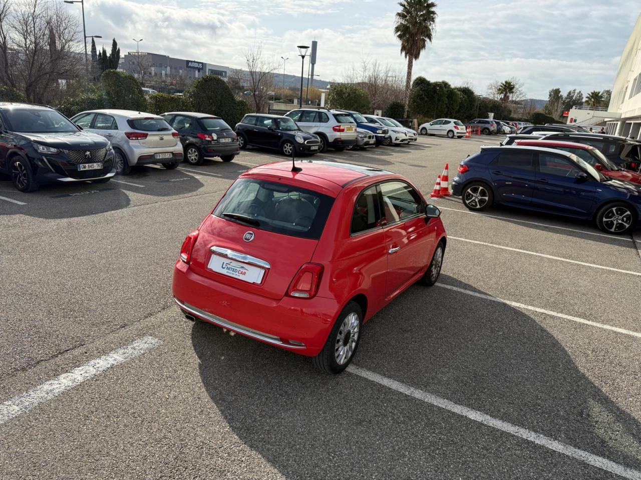 FIAT 500 Lounge 1.2i 69 ch avec toit panoramique qui sera soigneusement préparé par nos équipes. Véhicule certifié, garanti 12 mois et prêt à partir.