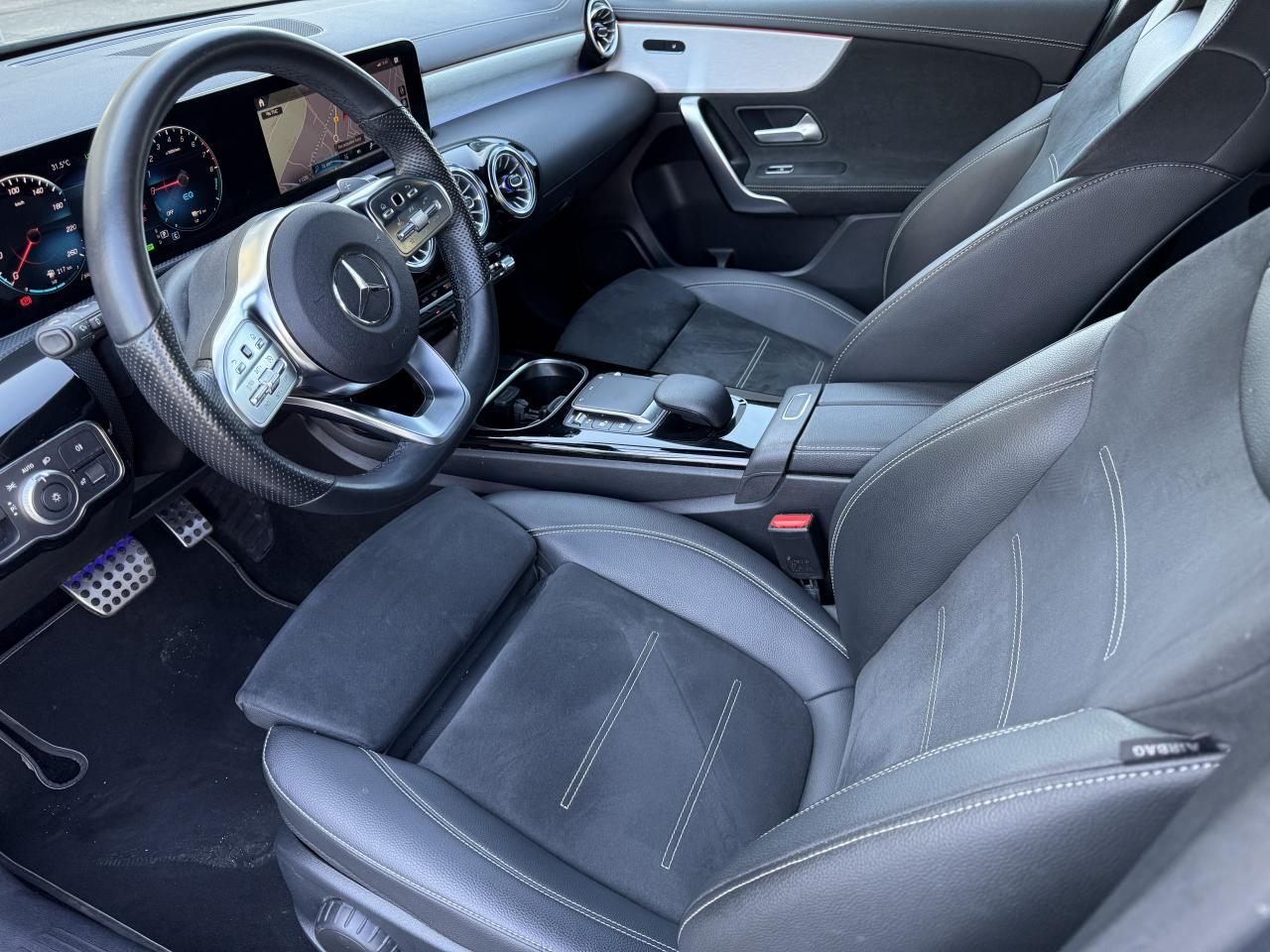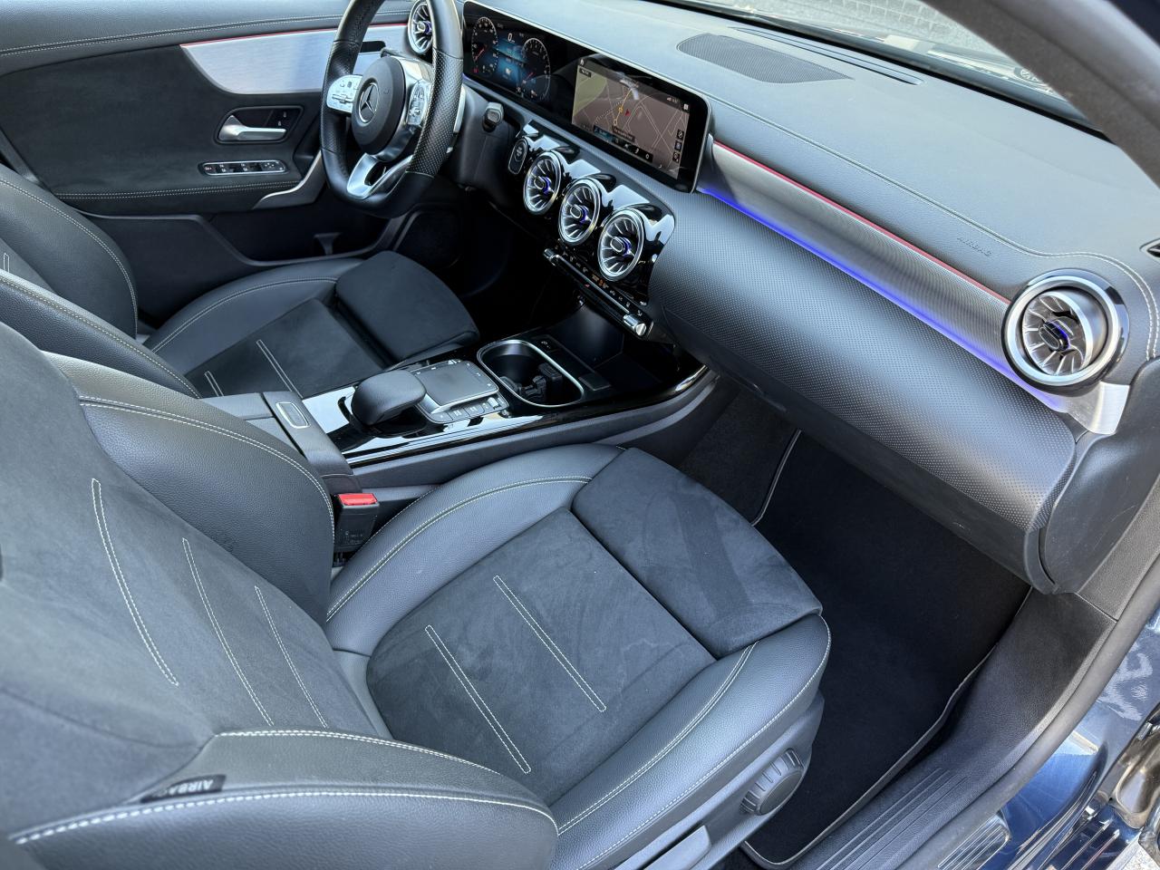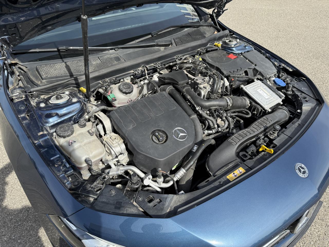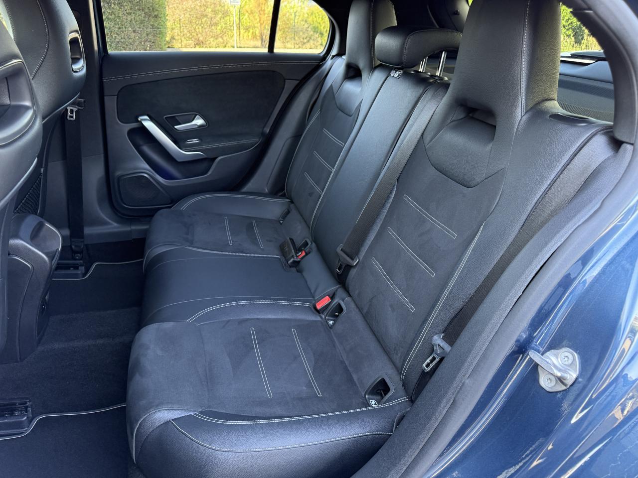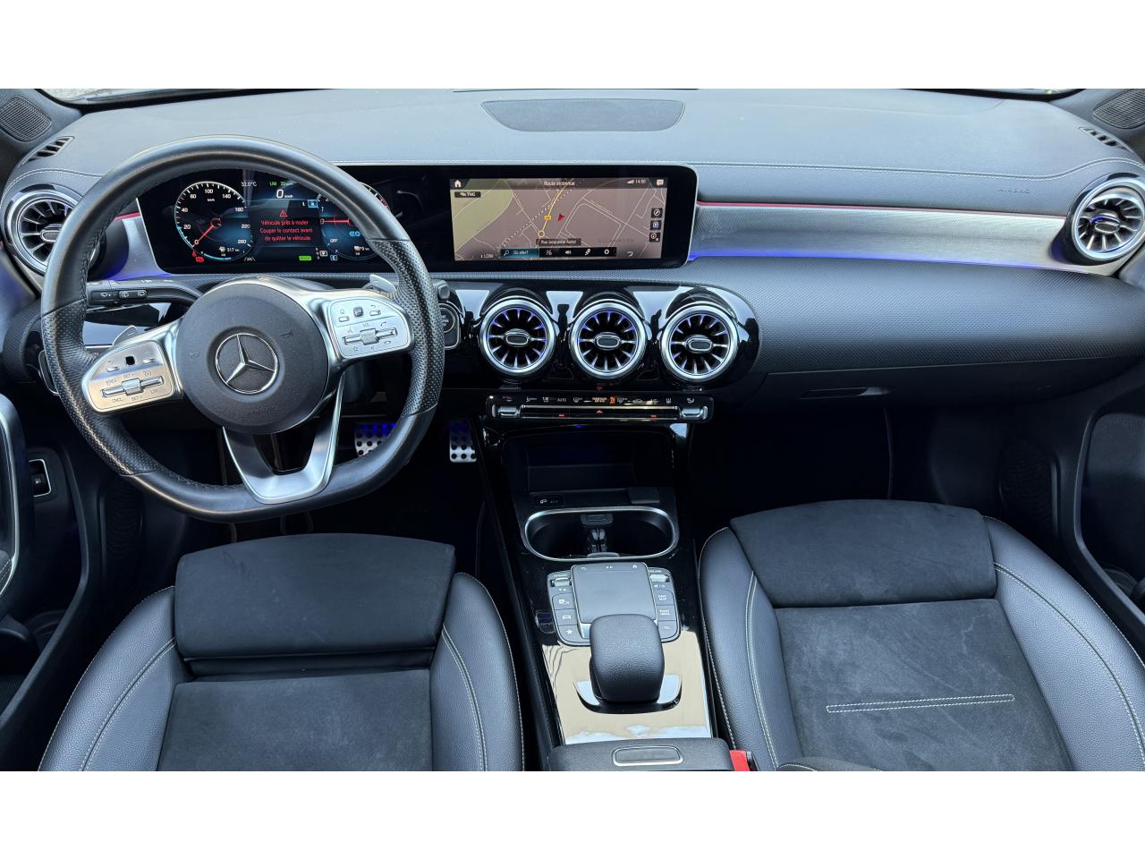 Accoudoir central avantADAPTIVE BRAKE avec fonction HOLD et aide au démarrage en côte, préremplissage et séchage des freins par freinage en cas de pluieAffichage du non bouclage des ceintures de sécurité aux places arrièreAttention Assist : système de détection de somnolenceAvertisseur de franchissement de ligne actifBaguettes de seuil avec monogramme "Mercedes-Benz"Boîte à gants éclairéeBoîte de vitesses à double embrayage 8G-DCTCâble de charge pour prise secteur, 5m, droitCapot moteur actif pour la protection des piétonsChargeur embarqué 3,7kWCiel de pavillon en tissu noirClimatisation automatique THERMATIC à 1 zone avec filtre à charbons actifs contre la poussière, la suie et le pollenConnexion Bluetooth pour téléphone portableDésactivation automatique de l’airbag passager avantDossier AR rabattable 40/20/40DYNAMIC SELECT avec les programmes de conduite « ECO », « Confort », « Sport » et « Individual »Etriers de freins avant avec monogramme Mercedes-Benz et disques perforésFeux de stop adaptatifsFilets à bagages au dossier des sièges AVFrein de stationnement électriqueFreinage d'urgence assisté actifInterface USB-C dans le vide-poches et dans la console centrale arrièreKit anti-crevaison TIREFITKit carrosserie AMG composé de jupe avant, protections de bas de caisse et jupe arrièreModule de communication LTE pour l'utilisation des services Mercedes me connectPédalier sport AMG en acier inoxydable brossé avec picots en caoutchoucPack visibilitéPavé tactile TouchpadProjecteurs hautes performances à technologie LEDRéception radio numérique (DAB)Rainsensor (Capteur de pluie et de luminosité)Reconnaissance des panneaux de limitation de vitesseSiège conducteur avec réglages de la hauteur et de l'approche du siège, de l'inclinaison du dossier, de l'inclinaison de l'assise, de la profondeur de l'assiseSièges avant sport intégrauxSorties d'échappement apparentes en chrome (non fonctionnelles)Système d'Appel d'Urgence Mercedes-BenzSystème de commande vocale et assistant personnel activable grâce à "Hey Mercedes"Système de contrôle de la pression des pneusSystème de stabilisation en cas de vent latéralSystème multimédia MBUX avec fonctionnalités élargies (profils personnalisés, fonctions prédictives, borne Wifi, webradio)Tapis de sol AMGTEMPOMAT (régulateur et limiteur de vitesse)Volant sport multifonction à 3 branches en cuir Nappa, avec méplat, perforations au niveau de la zone de préhension, boutons tactiles Touch-Control, cache chromé et surpiqûres rouges