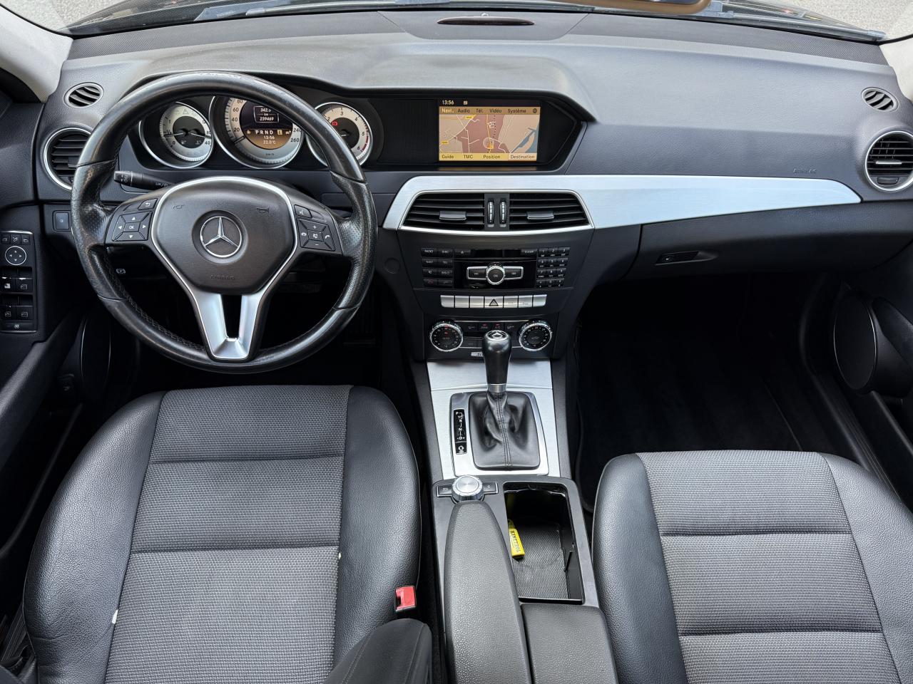 ABS (antiblocage de roues) et BAS (freinage d'urgence assisté)Accoudoir central avant avec vide-pochesAdaptive BrakeAGILITY CONTROL : châssis, direction et boîte manuelle 6 rapports optimisés et train de roulement avec système d'amortissement sélectifAirbag genoux conducteurAirbags de tête avant/arrièreAirbags frontaux à 2 seuils de déclenchementAirbags latéraux avantAllumage automatique des projecteursAntivol à clé électronique avec système de verrouillage ELCODEAppuie-tête avant actifs NECK-PROAttention Assist : système de détection de somnolenceAvertisseur de perte de pression des pneusBaguette de ligne de ceinture en aluminium poliBanquette arrière rabattable 1/3-2/3Blocs optiques avant foncésBoîte de vitesses automatique à 7 rapports 7G-TRONIC PLUSCapteur de pluieCeintures de sécurité 3 points avec rétracteur et limiteur d'effort x4Cerclage chromé des projecteurs antibrouillardClé design avec insert chroméClignotants à commande confort par impulsionsClimatisation automatique THERMATICColonne de direction réglable manuellement en hauteur et en profondeurCombiné d'instruments avec fond argentéConnexion Bluetooth pour téléphone portable et clavier numérique intégréCouvercle de coffre avec insert chroméDétecteur d'occupation du siège passager avantESP (régulation de comportement dynamique) avec ASR (antipatinage)Feux de jourFeux de stop adaptatifsFilet dans le coffre à bagages avec deux crochetsFiltre à particulesFonction d'arrêt/redémarrage "Stop/Start ECO" avec commutateur de désactivation manuelleGarnitures intérieures en similicuir ARTICO et DINAMICA noir avec surpiqûres contrastées rouges sur les sièges, la partie centrale des accoudoirs des portes, le volant et le soufflet du levier de vitesses et ceintures rougesGarnitures intérieures en tissu "Liverpool"/similicuir ARTICO, noir ou gris alpagaGrille de calandre en argent adamantin mat avec inserts chromés et étoile intégréeHabillage des montants B peint en noir brillantIndicateur dynamique de maintenance (ASSYST)Inserts décoratifs en aluminium foncéInterface USB dans l'accoudoir central avantISOFIX : fixation sièges-enfants arrièreJantes alliage 17'' à 5 branches doubles avec pneus 225/45 R17Lève-vitres électrique (x4) à commande séquentielle et dispositif anti-pincementOrdinateur de bordOuverture à distance du coffre avec la cléPack d'éclairagePare-chocs et rétroviseurs extérieurs couleur carrosseriePare-chocs, baguette de protection et couvercle de coffre avec insert chroméPare-soleil avec miroirs de courtoisie éclairésPoignées de portes couleur carrosseriePrise d'air avec grille à losangesProjecteurs et feux arrière antibrouillardRétroviseurs intérieur et extérieur gauche jour/nuit automatiques et rétroviseurs extérieurs rabattables électriquementRadio Audio 20 avec écran couleur 15 cm (5,8''),double tuner et lecteur CD compatible MP3/WMA/AACRoue de secours de type galetteSièges avant à réglages partiellement électriques (hauteur du coussin d'assise et inclinaison du dossier). Supports lombaires mécaniques dans le siège conducteurTEMPOMAT (régulateur de vitesse) et SPEEDTRONIC (limiteur de vitesse)Volant multifonctions en cuir Nappa à 3 branches avec insert chromé et cuir perforé au niveau des zones de préhension