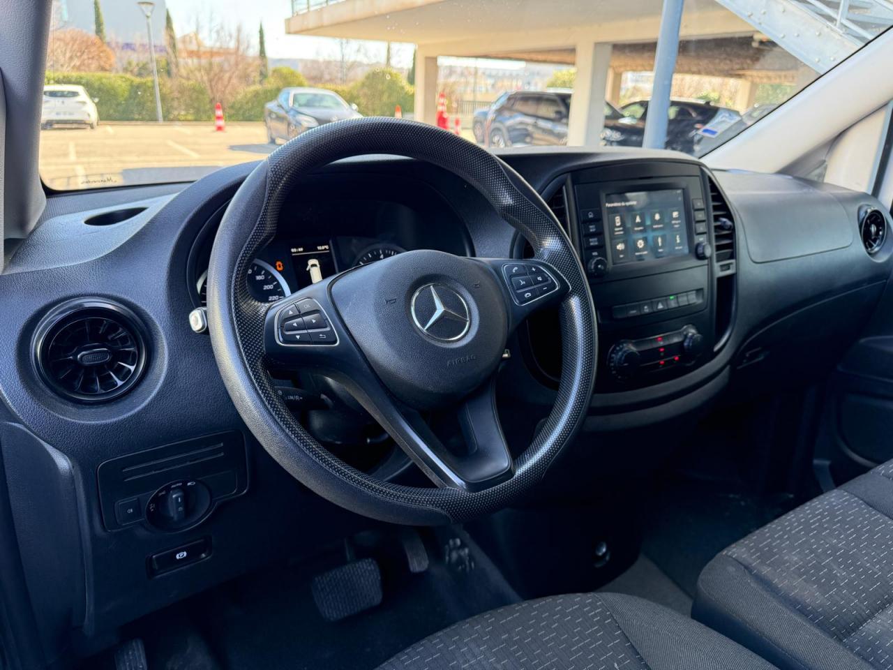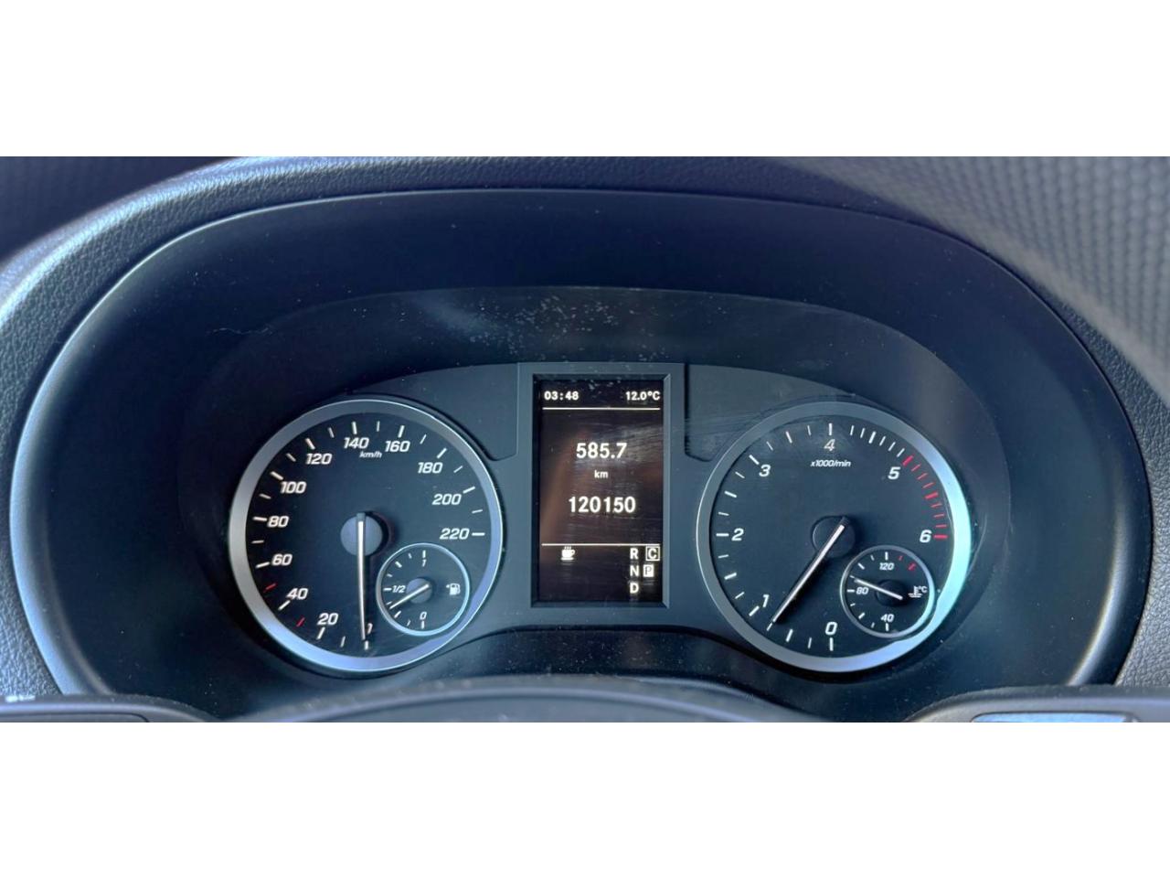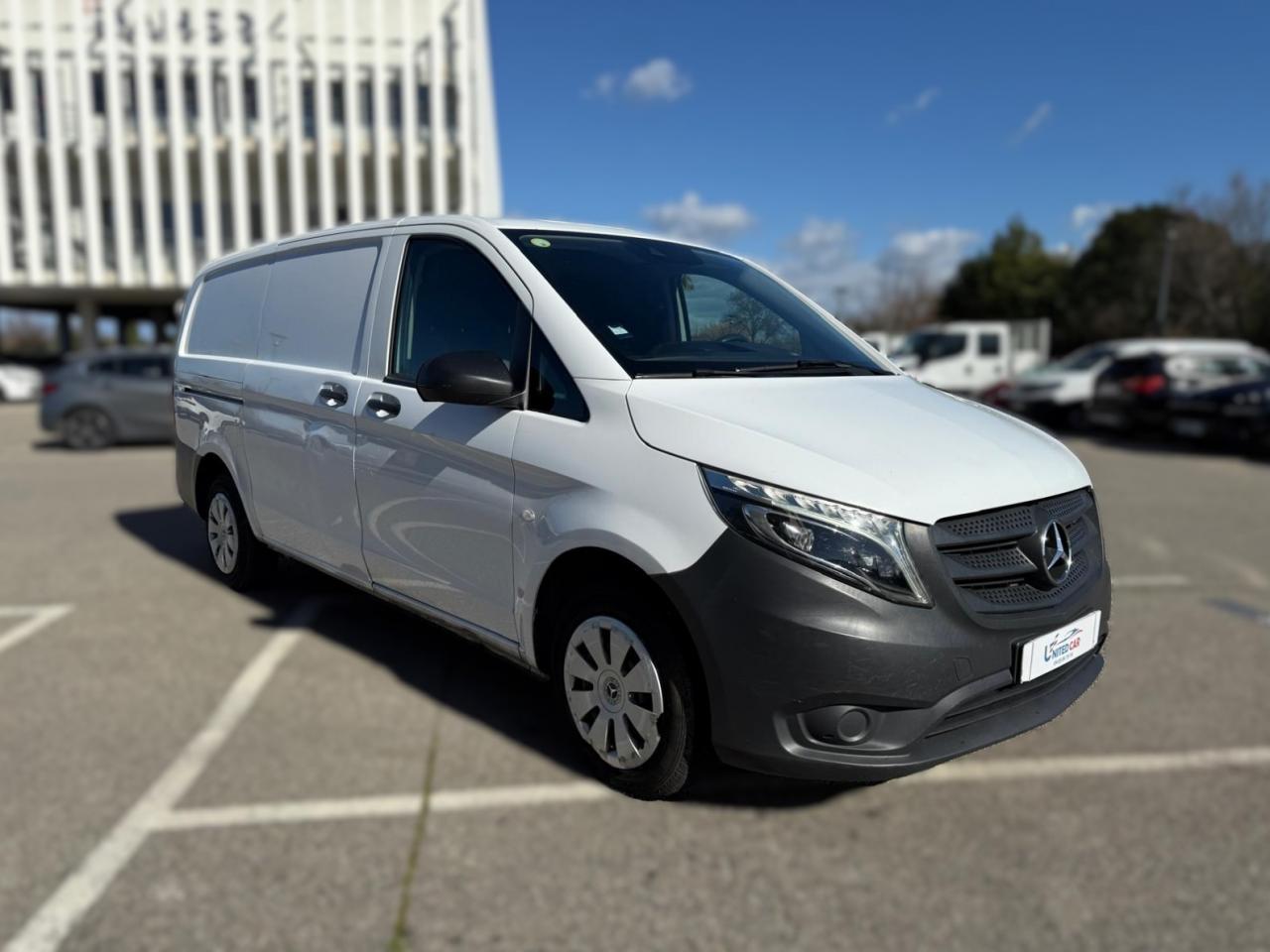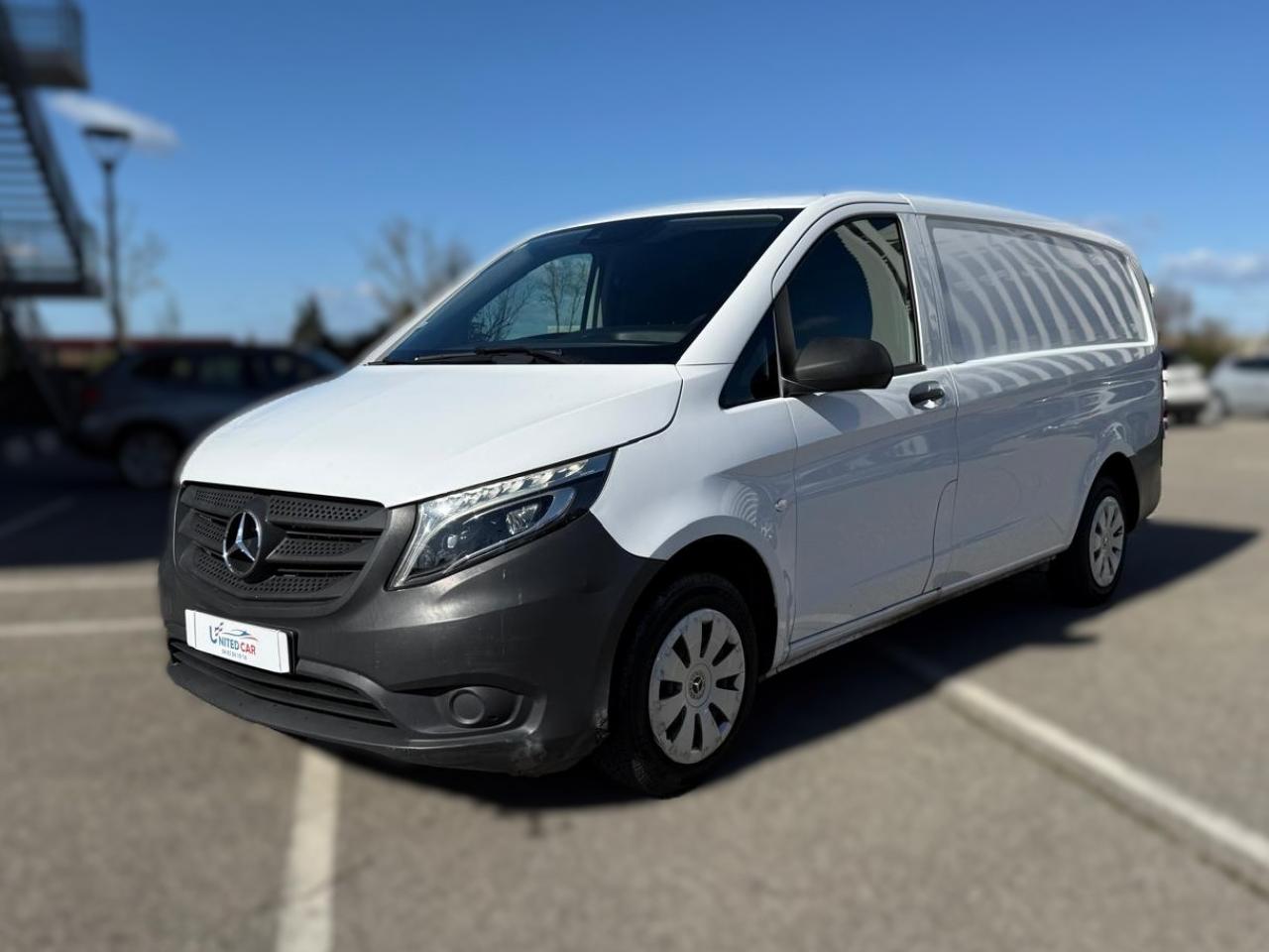 MERCEDES VITO Long 116 CDI BlueEFFICIENCY (163 ch) associé à la boîte automatique 9G‑TRONIC. Il s’agit d’une version propulsion en carrosserie fourgon, équipée d’une banquette passager avant 3 places et d’un PTAC de 2 800 kg, adaptée aux usages professionnels exigeants. Kilométrage relevé au compteur : 120 150 km.