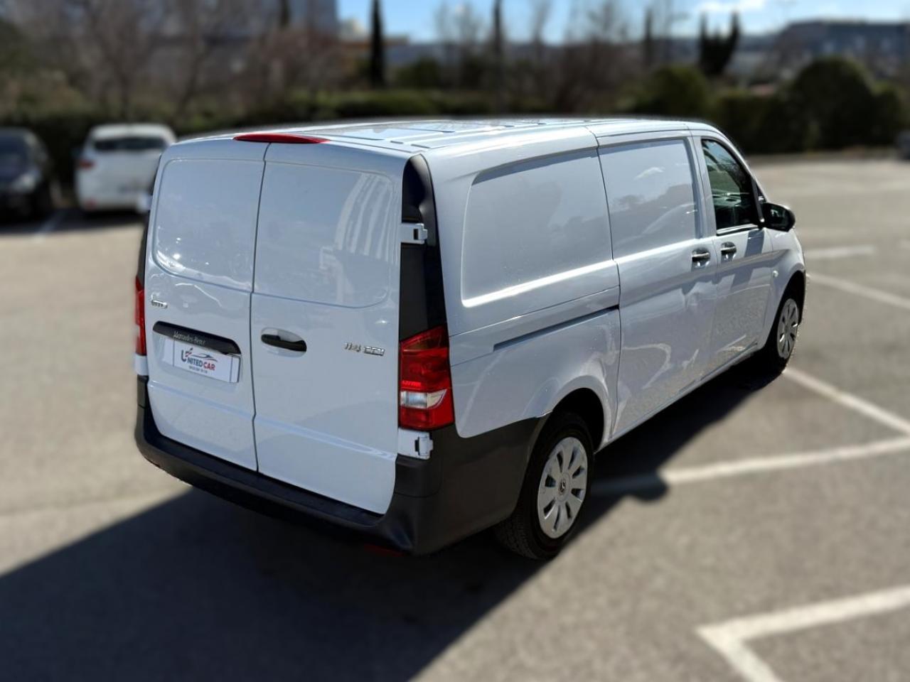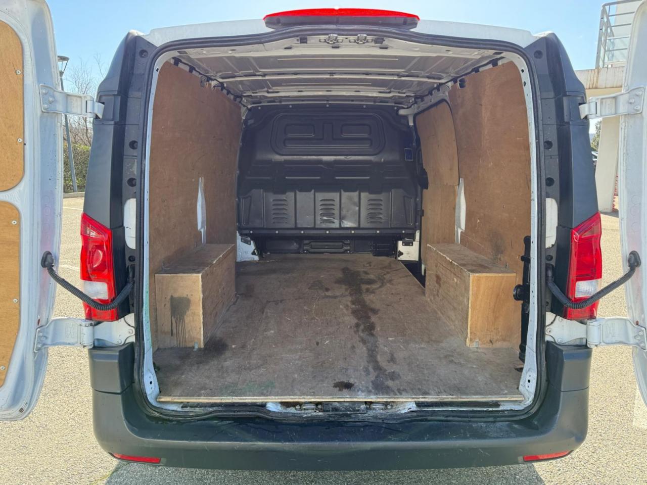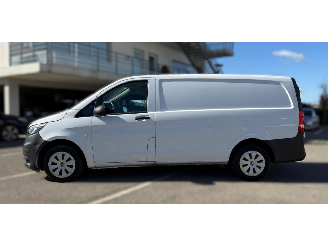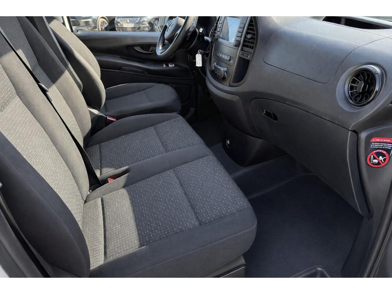 MERCEDES VITO Long 116 CDI BlueEFFICIENCY (163 ch) associé à la boîte automatique 9G‑TRONIC. Il s’agit d’une version propulsion en carrosserie fourgon, équipée d’une banquette passager avant 3 places et d’un PTAC de 2 800 kg, adaptée aux usages professionnels exigeants. Kilométrage relevé au compteur : 120 150 km.