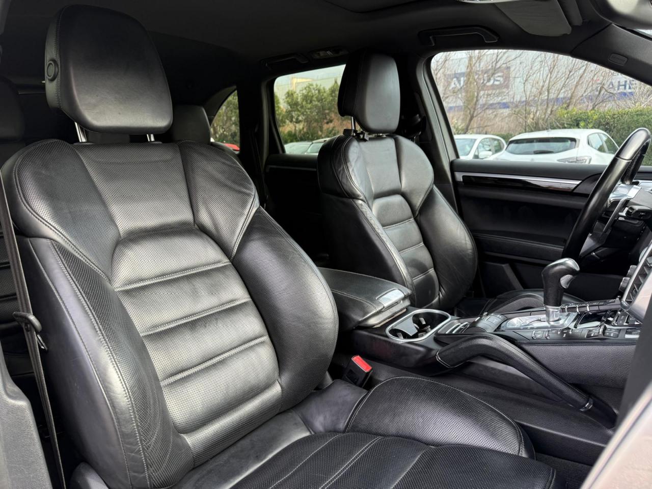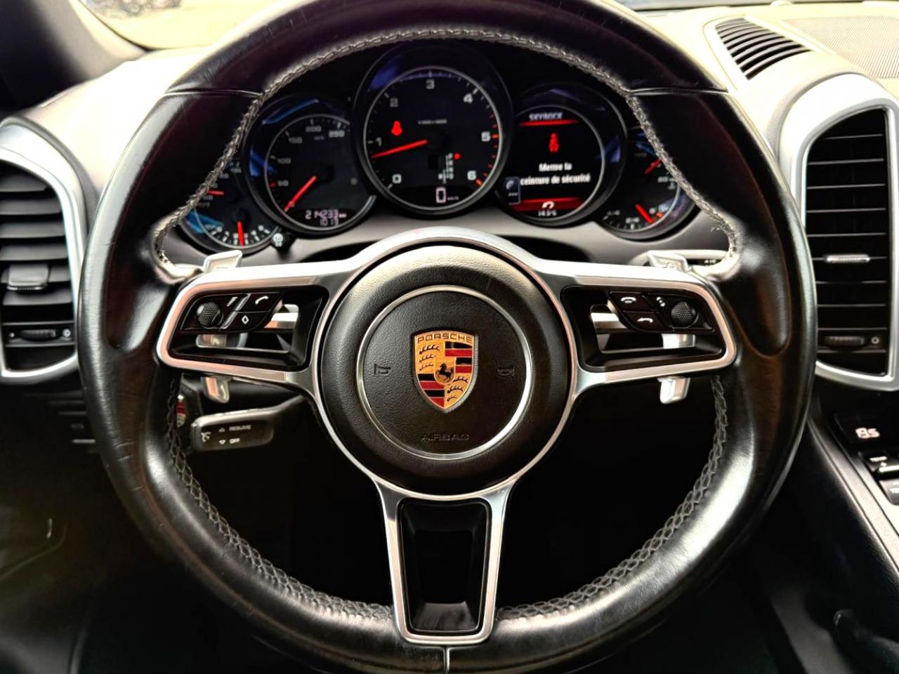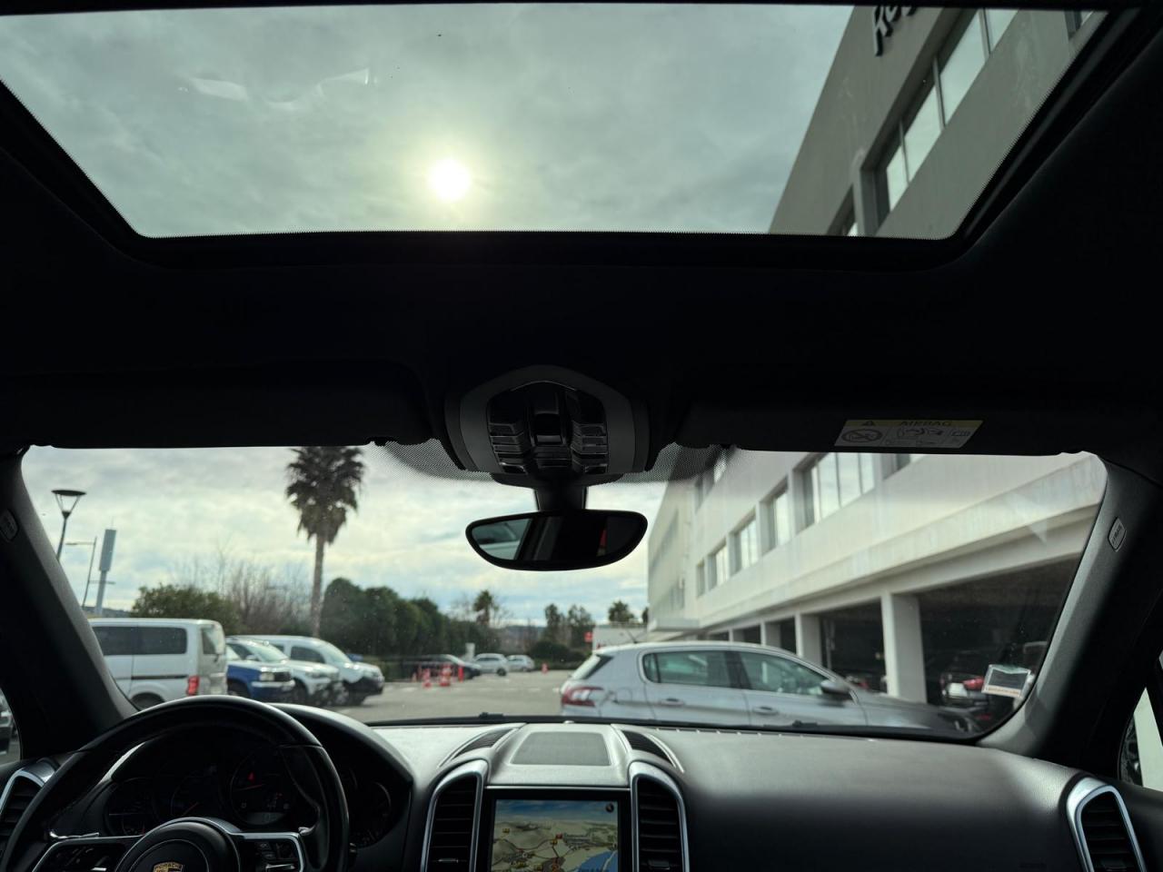 5 instruments ronds intégrés dans le cockpit5 places, banquette arrière avec 2 sièges latéraux confortables et une place centraleToit ouvrant en verre5 prises de courant (12 V)Accoudoir de la console centrale relevable et réglable en profondeurAffichage analogique : température et pression d'huile, température du liquide de refroidissement, niveau carburantAntenne intégrées dédiées à la radio, la navigation, le téléphone et la TV (selon l'équipement choisi)Assistance à la descente (Porsche Hill Control, PHC)Assistance au démarrageAssistance automatique à l'utilisation des feux de croisementBanquette arrière fractionnable (40/20/40), accoudoir central rabattable, avec réglage manuel de la profondeur d'assise et de l'inclinaison du dossierBoîte de vitesse Tiptronic S à 8 rapports avec fonction Stop-Start automatiqueCapacité de réservoir : 85 litresClimatisation automatique avec réglage séparé côtés conducteur et passager, contrôle automatique du recyclage de l'air, touche AC-MAX et capteur d'humiditéContrôle de pression des pneus ( TPMS )Diamètre des disques de frein 350 mm à l'avant, 330 mm à l'arrièreEtriers de freins rougesFermeture centralisée des portes à télécommandeFonction antireculFonction Stop-Start automatiqueFrein de parking électriqueFrein multi-collisionHayon automatiqueJantes Cayenne 18 poucesOrdinateur de bordPhares au Bi-xénonPorsche Car Connect (PCC) avec Porsche Vehicule Tracking System Plus (PVTS Plus)Porsche Traction Management (PTM) : transmission intégrale dynamique avec différentiel central multidisque électronique, différentiel de freinage automatique (ABD), système de régulation antipatinage (ASR)Récupération d'énergie pour l'électronique embarquéeRégulateur de vitesseRétroviseurs extérieurs chauffants, réglables et repliables électriquement, de forme asphérique côté conducteurSeuils de portes en acier inoxydableSystème ISOFIX de fixation de sièges enfant sur le siège passager et les sièges arrière latérauxVitres teintées à isolation thermique avec pare-brise teinté dégradé grisVolant sport multifonctions